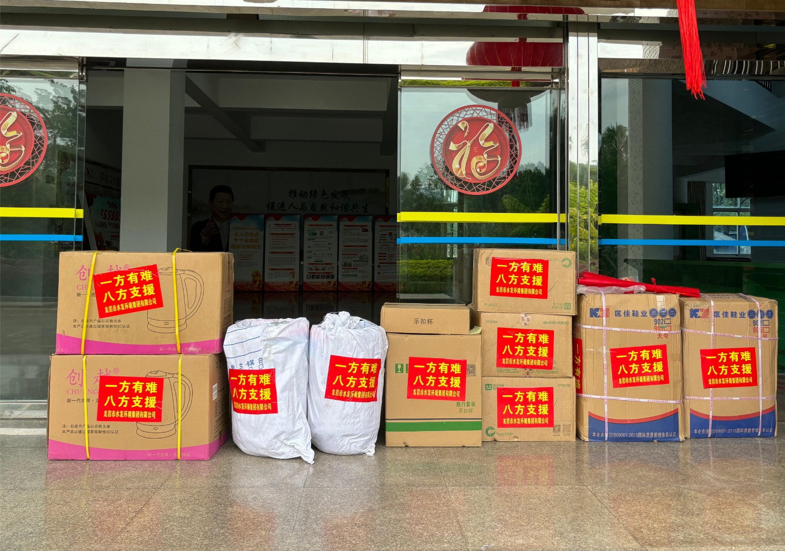 在搶險(xiǎn)救災(zāi)的同時(shí),環(huán)境集團(tuán)還積極開(kāi)展愛(ài)心行動(dòng)。6月23日,環(huán)境集團(tuán)捐贈(zèng)近萬(wàn)元,采購(gòu)雨鞋、燒水壺、洗漱用品、食品、飲用水、藥品等應(yīng)急救援所需物資,第一時(shí)間送往上杭縣溪口鎮(zhèn)、大連村等受災(zāi)地區(qū),為受災(zāi)群眾提供基本的生活保障。天災(zāi)無(wú)情人有情,物資有限關(guān)愛(ài)無(wú)限。